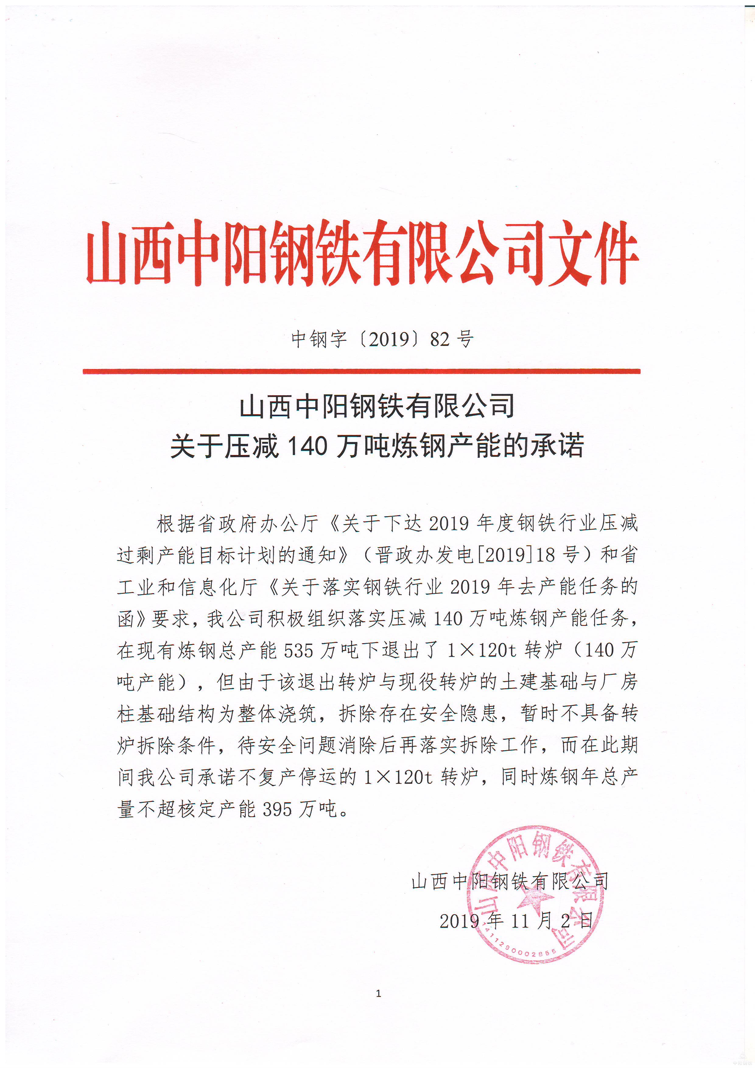 关于山西时博平台有限公司压减140万吨炼钢产能承诺的相关公示