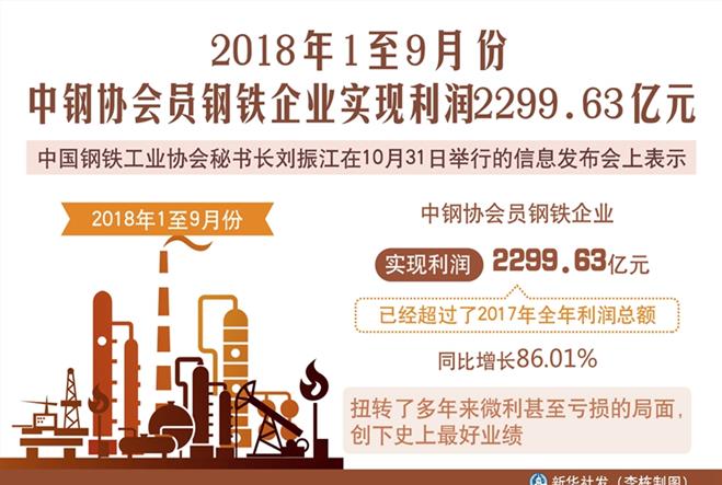 前三季度中钢协会员钢铁企业实现利润2299.63亿元