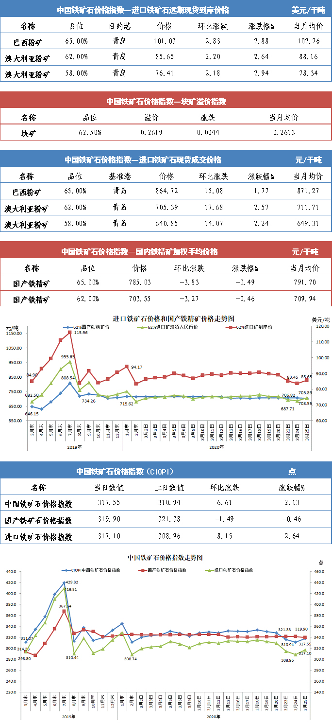 【行业指数】3月25日中国铁矿石价格指数