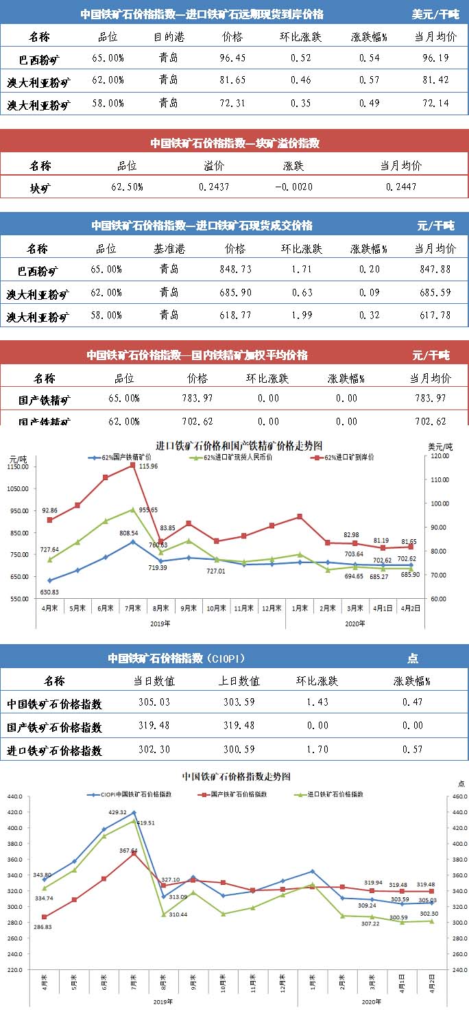 【行业指数】4月2日中国铁矿石价格指数