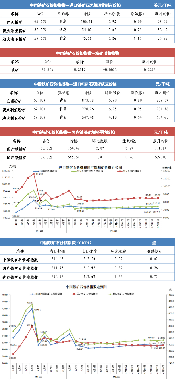 【行业指数】4月20日中国铁矿石价格指数