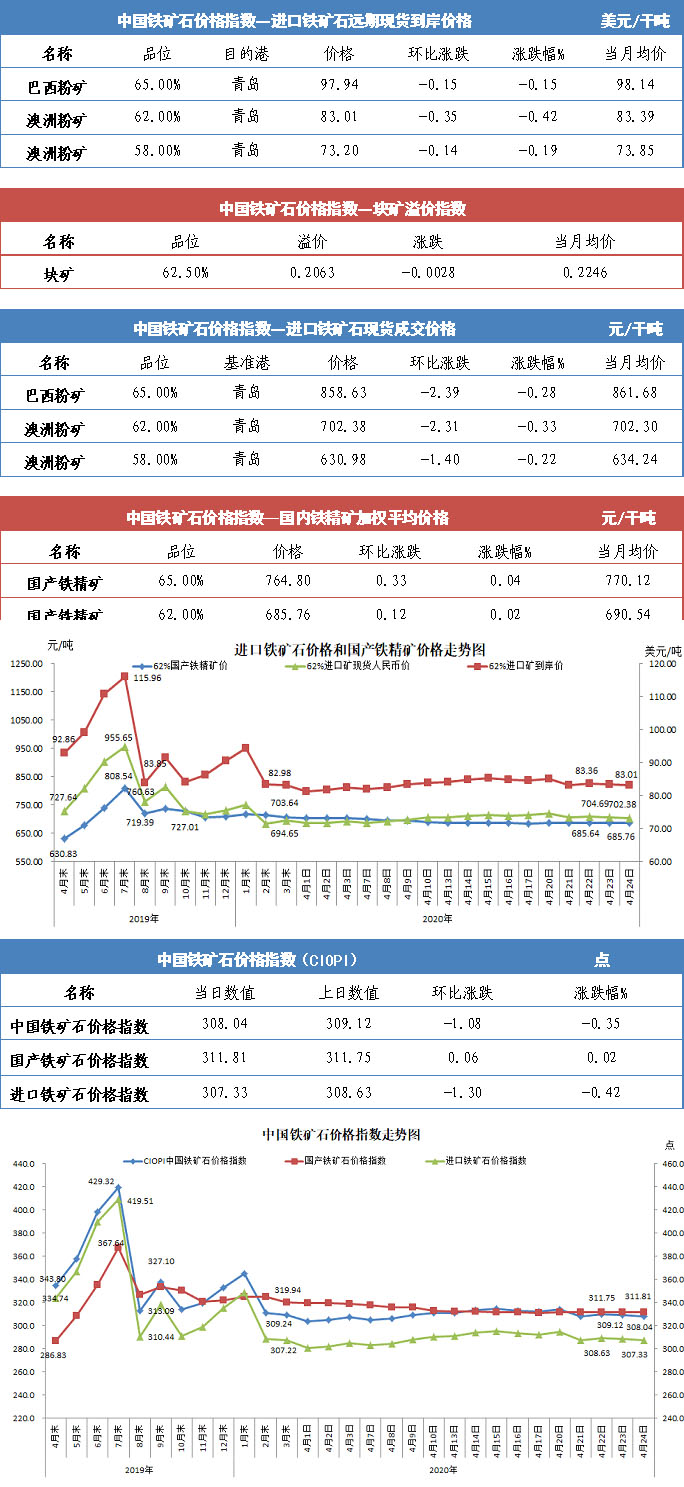 【行业指数】4月24日中国铁矿石价格指数