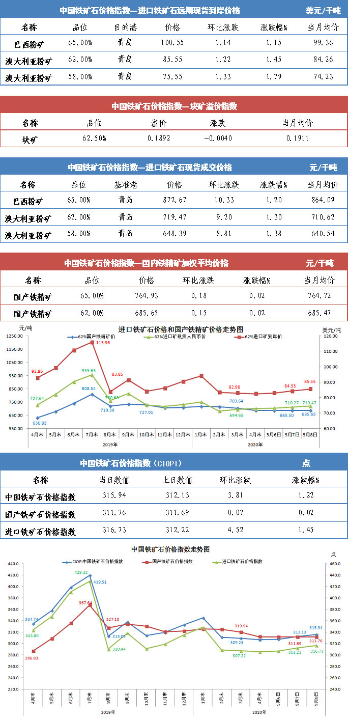 【行业指数】5月8日中国铁矿石价格指数