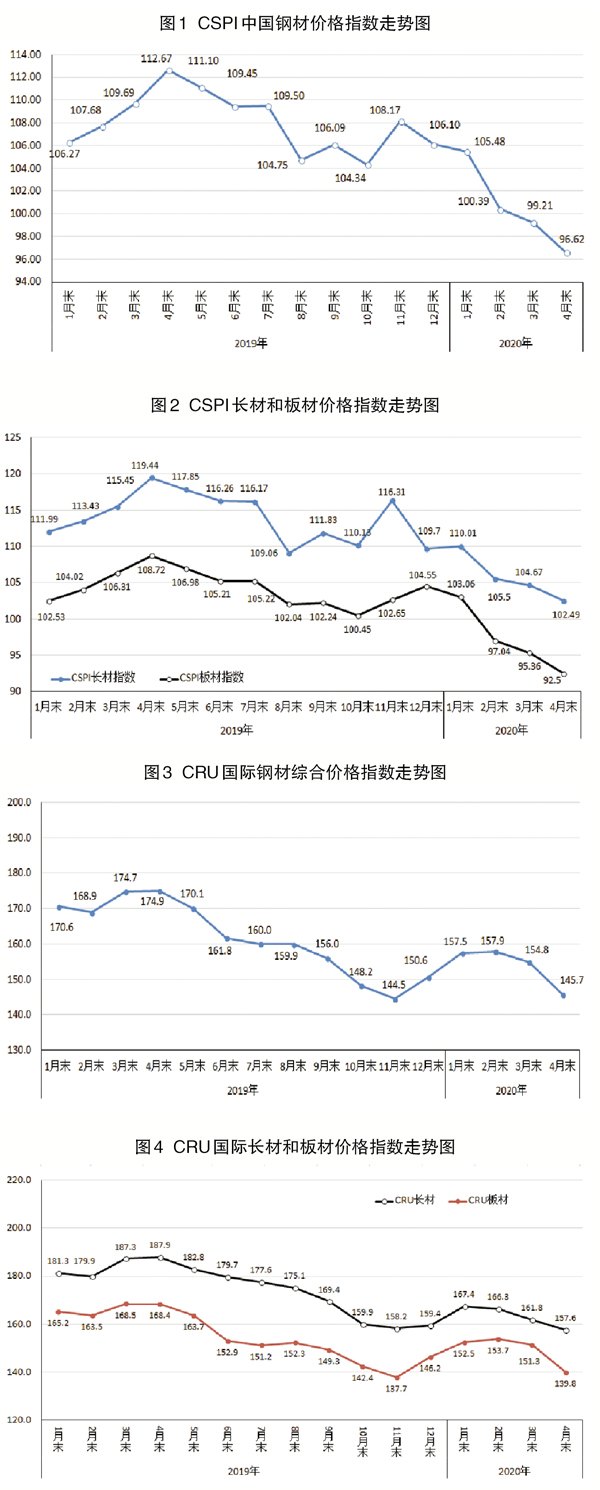 4月份,我国新冠肺炎疫情防控取得阶段性成效,下游用钢行业复工复产持续推进。由于市场需求尚未全面恢复,而钢铁生产保持较高水平,市场仍呈供大于求态势,钢材价格继续下行。后期随着需求形势的进一步好转,钢材价格将呈小幅回升走势。