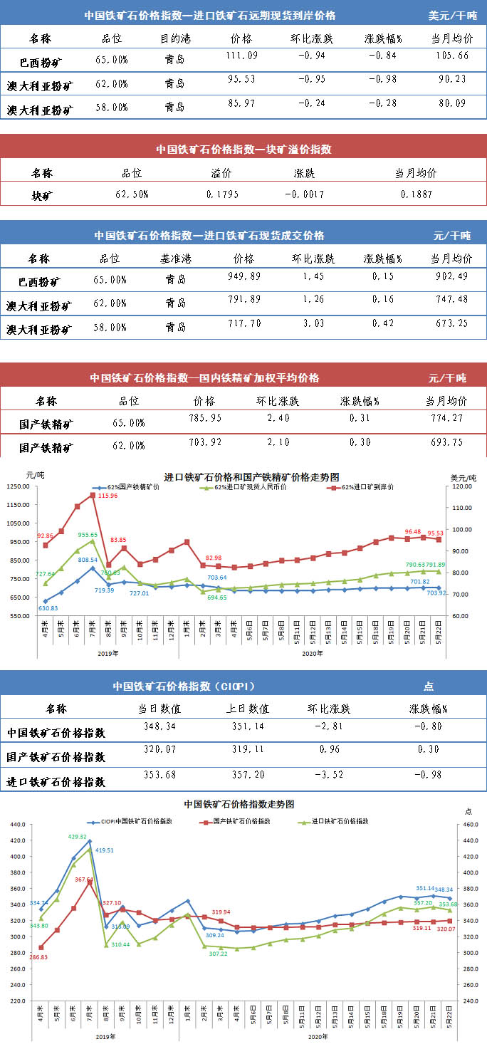 【行业指数】5月22日中国铁矿石价格指数
