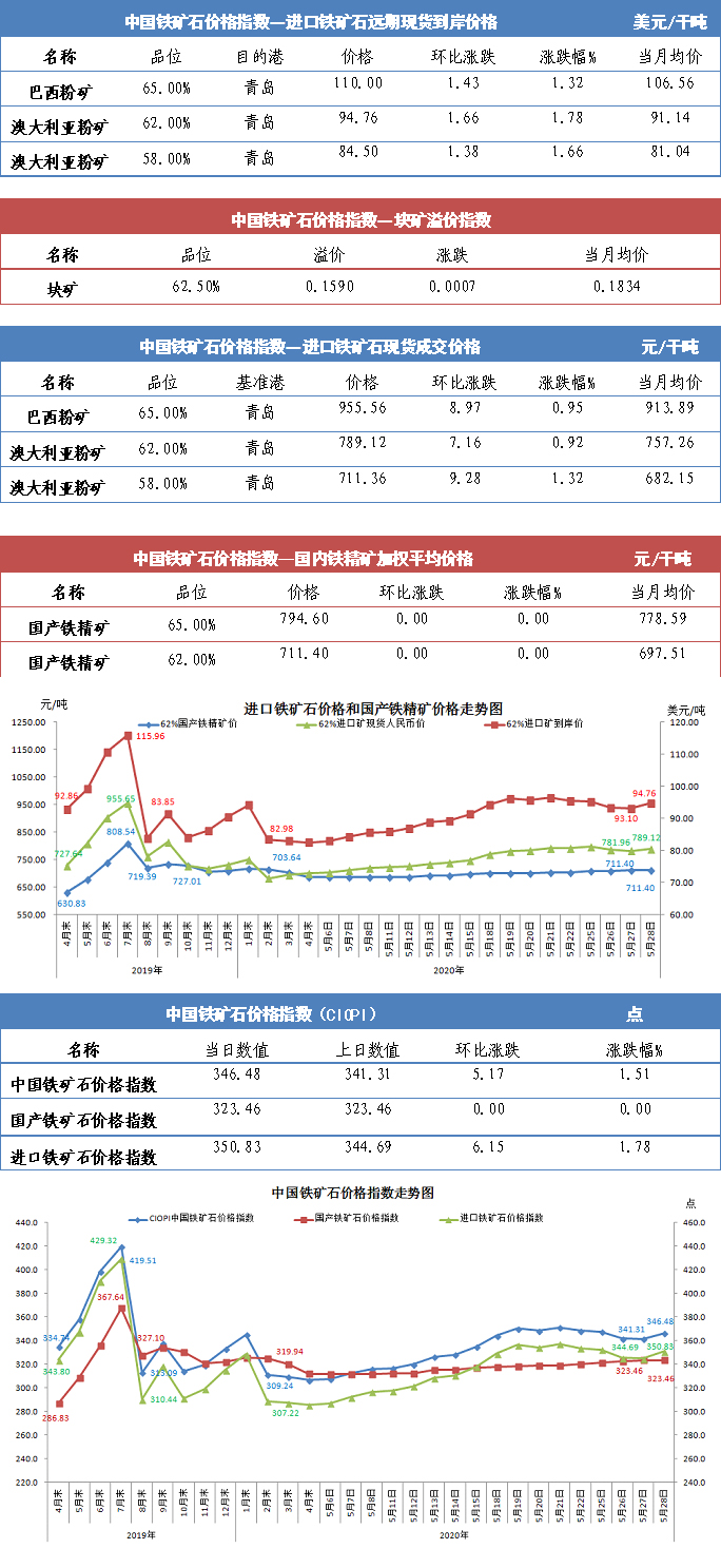 【行业指数】5月28日中国铁矿石价格指数