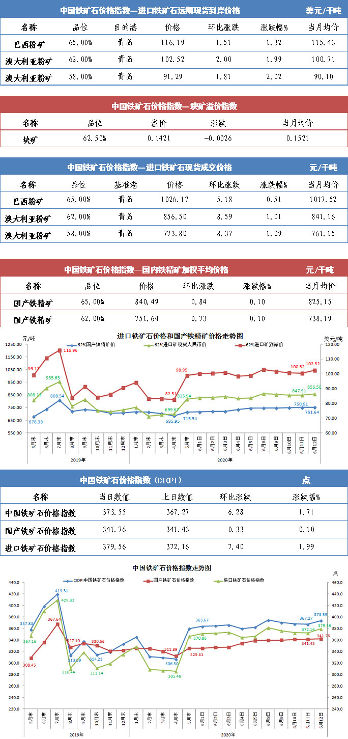 【行业指数】6月12日中国铁矿石价格指数