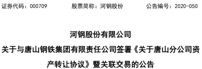 9月12日,河钢股份发布关于与唐山钢铁集团有限责任公司签署《关于唐山分公司资产转让协议》暨关联交易的公告。