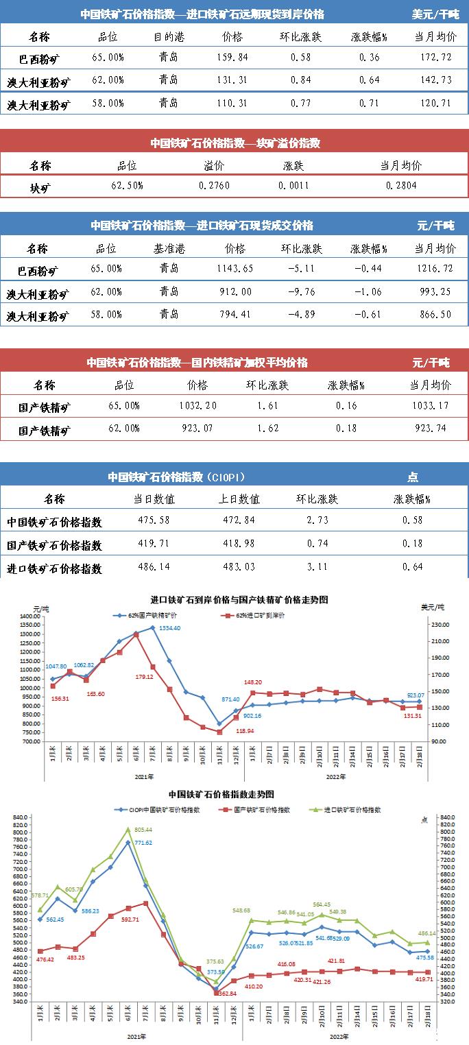 【行业指数】2月18日中国铁矿石价格指数