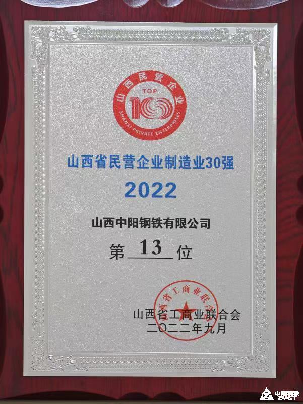 2022年山西省民营企业制造业30强