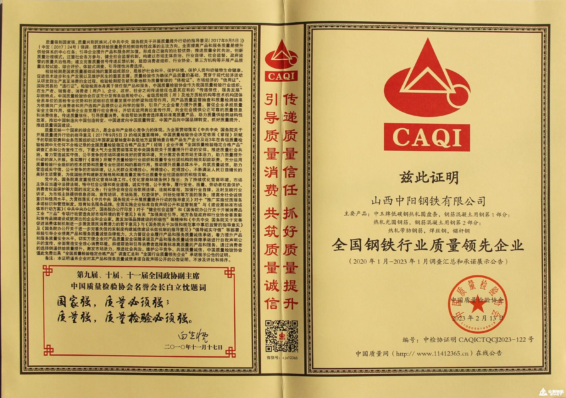 2023年全国钢铁行业质量领先企业
